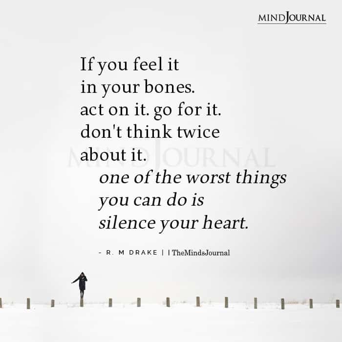 If you feel it in your bones. act on it. go for it. Don’t think twice about it. one of the worst things you can do is silence your heart.