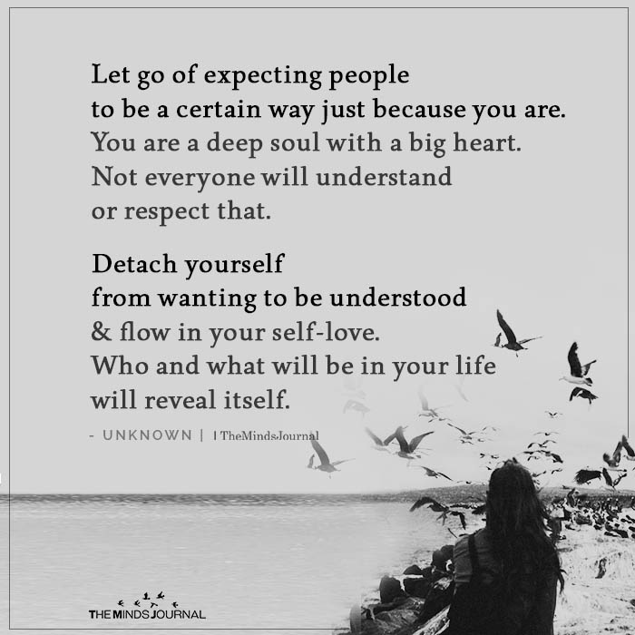 Let go of expecting people to be a certain way just because you are. You are a deep soul with a big heart. Not everyone will understand or respect that. Detach yourself from wanting to be understood & flow in your self-love. Who and what will be in your life will reveal itself.