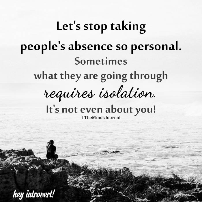 Let’s stop taking people’s absence so personal. Sometimes what they are going through requires isolation. It’s not even about you!