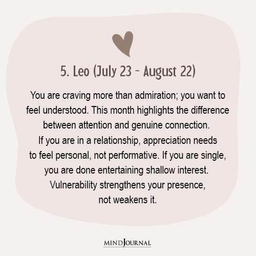 Some connections deepen because both people finally say the uncomfortable thing. Others fade because silence says enough. This isn’t a month of chasing love; it’s a month of understanding how you love, and why.