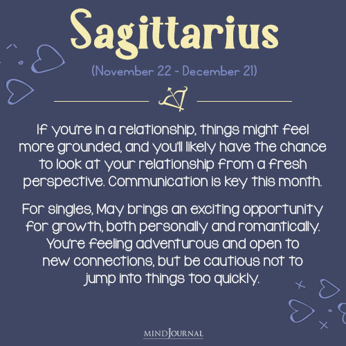 For singles, May brings an exciting opportunity for growth, both personally and romantically. Youโre feeling adventurous and open to new connections, but be cautious not to jump into things too quickly.