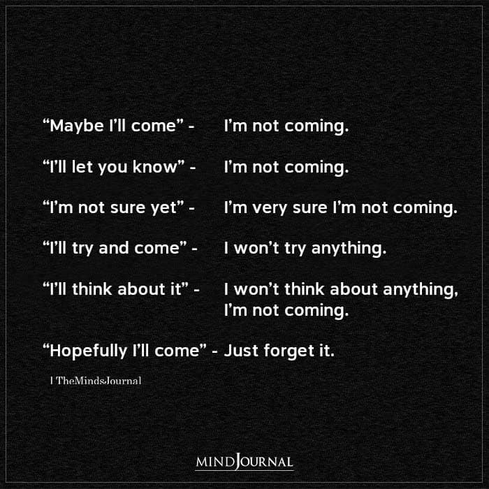 “Maybe I’ll come” – I’m not coming.