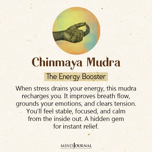 Chinmaya Mudra is all about circulating prana, or life force energy. This gesture helps clear away tension, making it one of the most underrated yoga mudras for anxiety.