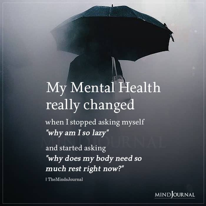 My Mental Health really changed when I stopped asking myself “why am I so lazy” and started asking “why does my body need so much rest right now?”