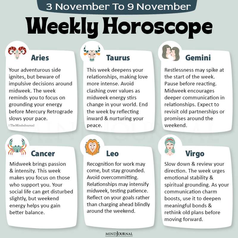 Restlessness may spike at the start of the week. Pause before reacting. Midweek encourages deeper communication in relationships. Expect to revisit old partnerships or promises around the weekend.