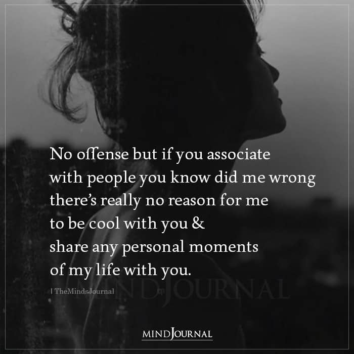 No offense but if you associate with people you know did me wrong there’s really no reason for me to be cool with you & share any personal moments of my life with you.