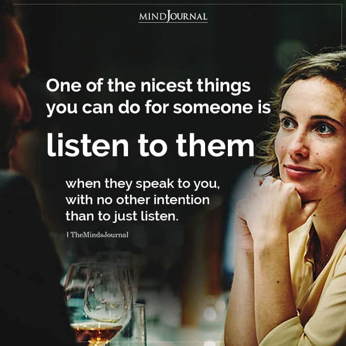 One of the nicest things you can do for someone is listen to them when they speak to you, with no other intention than to just listen.