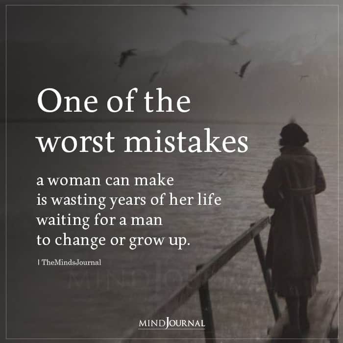 One of the worst mistakes a woman can make is wasting years of her life waiting for a man to change or grow up.