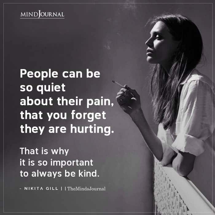 People can be so quiet about their pain, that you forget they are hurting. That is why it is so important to always be kind.