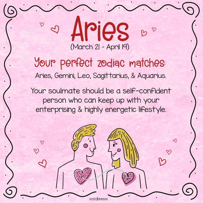Perfect Soulmate for Aries: a self-confident person who can keep up with their enterprising lifestyle.
