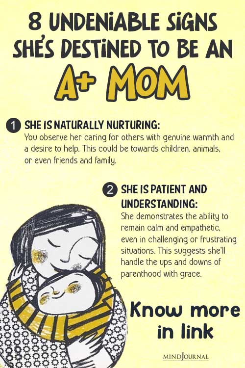 The signs a woman will be a good mother include the ability to model positive traits, like integrity, honesty, and resilience. Kids mimic what they see, and a mother who walks the talk is one of the best teachers they’ll ever have. So if you’re looking for tips on how to be a good mother, remember that actions often speak louder than words.