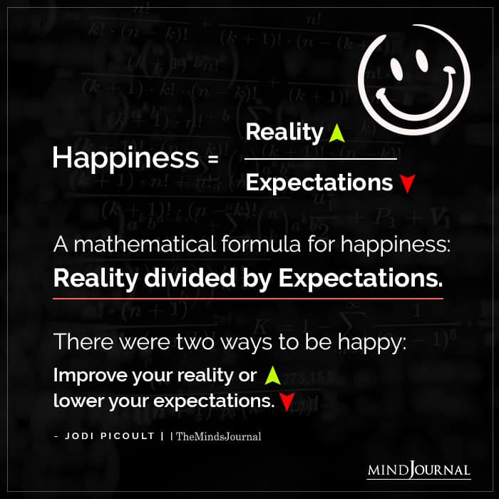 A mathematical formula for happiness: Reality divided by Expectations. There were two ways to be happy: Improve your reality or lower your expectations.