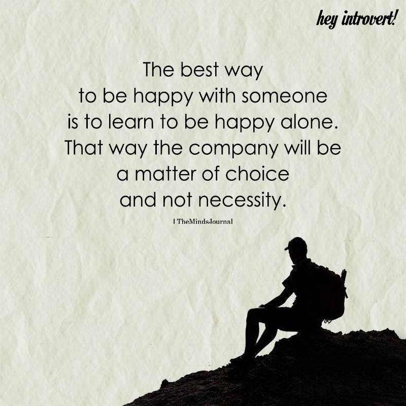 The best way to be happy with someone is to learn how to be happy alone. That way the company will be a matter of choice and not necessity.