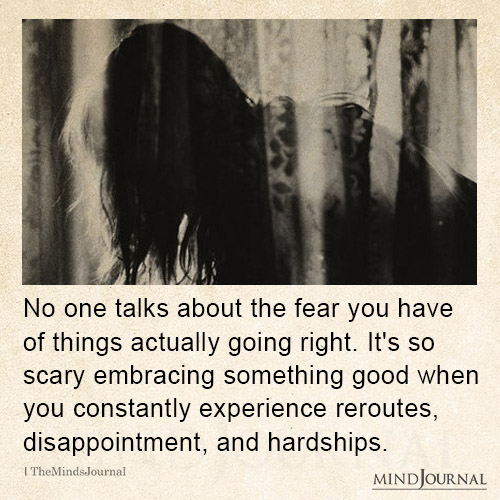 No one talks about the fear you have of things actually going right. It’s so scary embracing something good when you constantly experience reroutes, disappointment, and hardships.