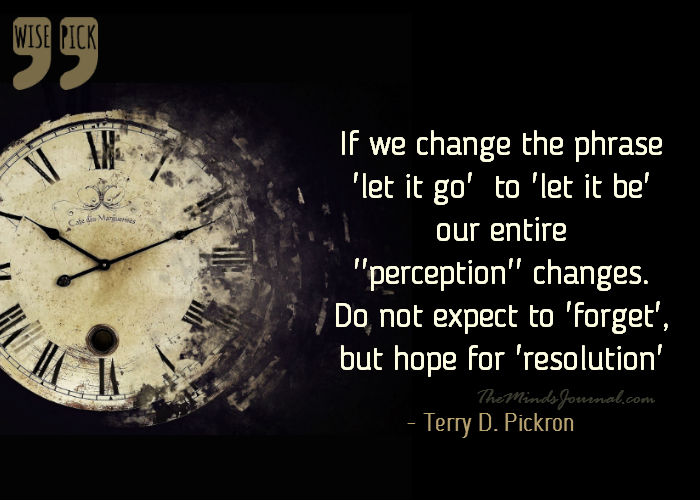 If we change the phrase ‘let it go’ to ‘let it be’ our entire ‘perception’ change do not expect to ‘forget’ but hope for ‘resolution’ – Terry D. Pickron