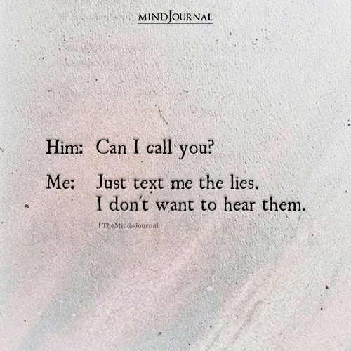 ME: Just text me the lies. I don’t want to hear them.– Unknown