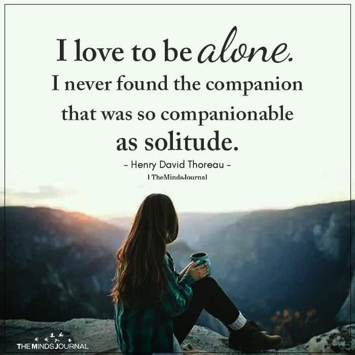 I love to be alone. I never found the companion that was so companionable as solitude.