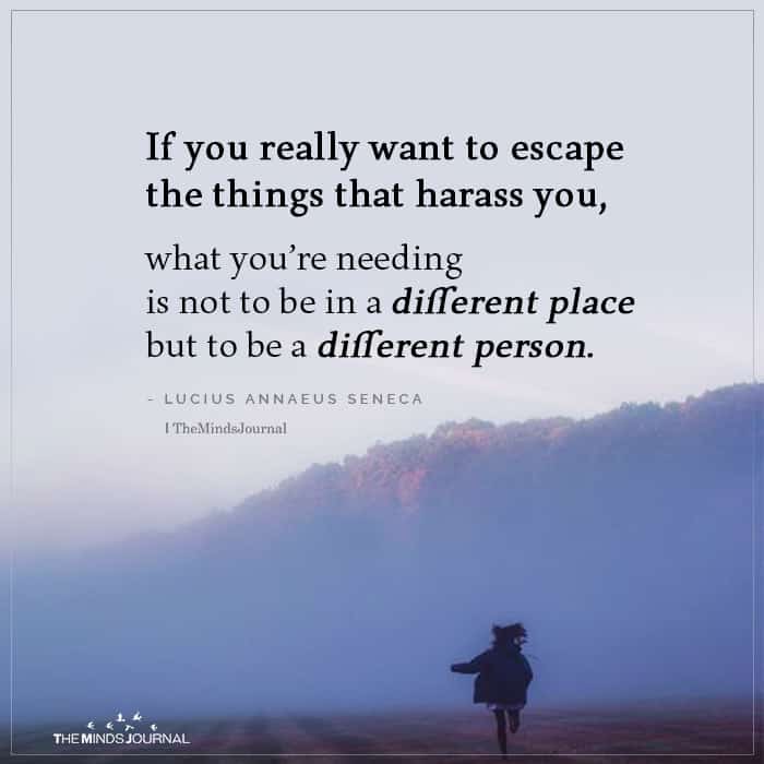 If you really want to escape the things that harass you, what you’re needing is not to be in a different place but to be a different person.