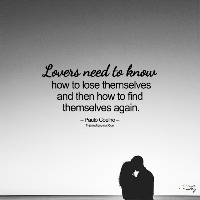 Lovers need to know how to lose themselves and then how to find themselves again.