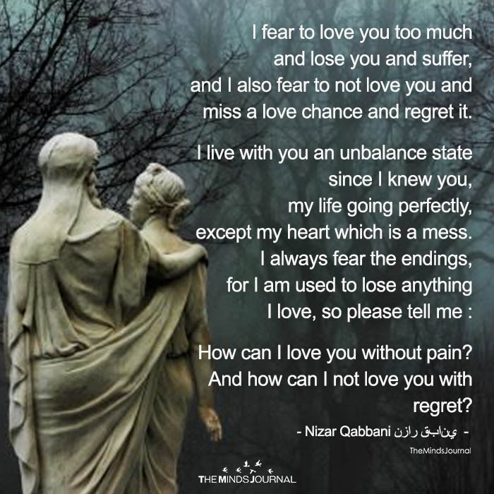 I Fear To Love You Too Much And Lose You And Suffer