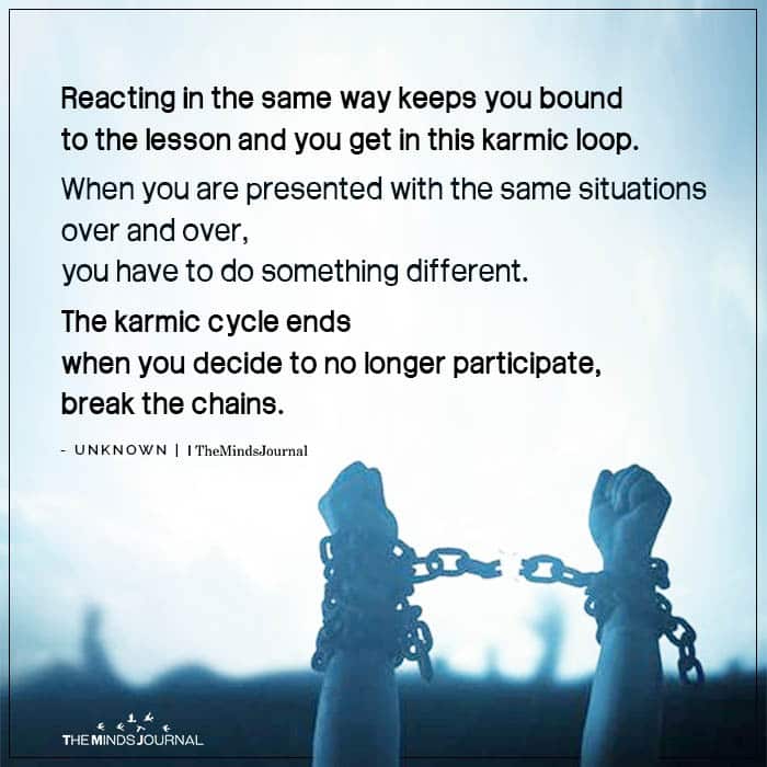 The karmic cycle ends when you decide to no longer participate, break the chains.