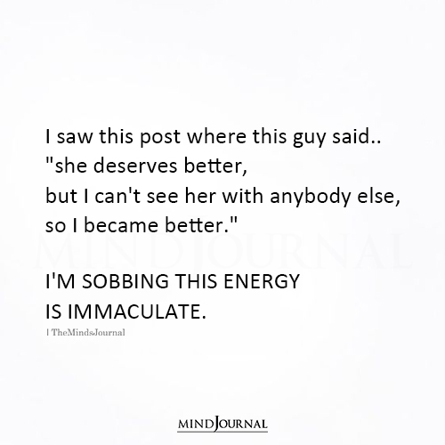I saw this post where this guy said.. “she deserves better, but I can’t see her with anybody else, so I became better.”
