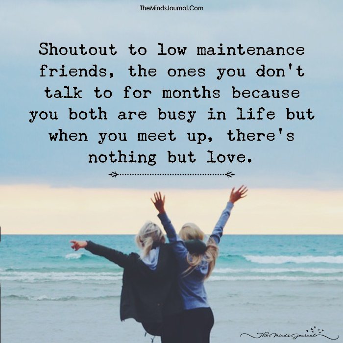 Shoutout to the low maintenance friends, the ones you don’t talk to for months because you’re both living life but when you meet up, there’s nothing but love.
