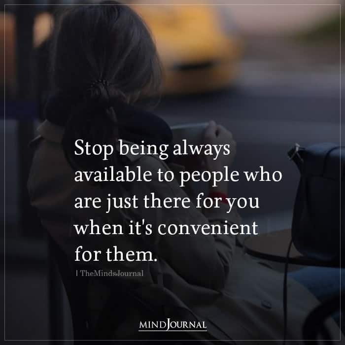 Stop being always available to people who are just there for you when it’s convenient for them.