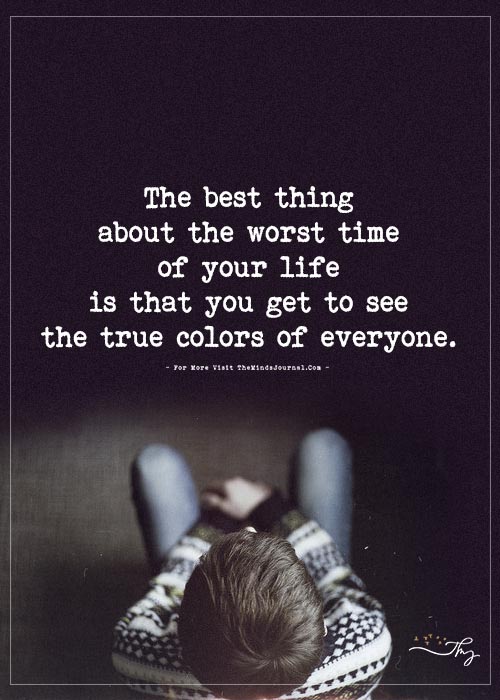 The best thing about the worst time of your life is that you get to see the true colors of everyone.