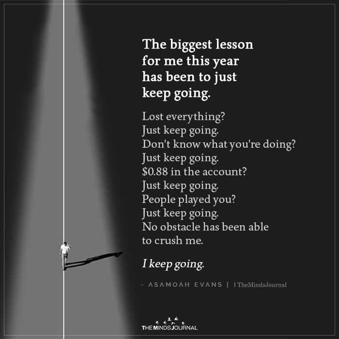 The biggest lesson for me this year has been to just keep going.