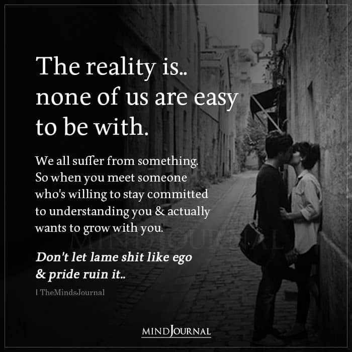 The reality is… None of us are easy to be with. We all suffer from something. So when you meet someone who’s willing to stay committed to understanding you & actually wants to grow with you. Don’t let lame shit like ego & pride ruin it…
