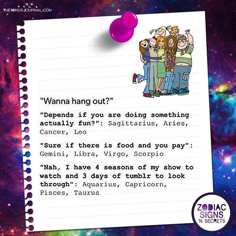 “Sure if there is food and you pay”: Gemini, Libra, Virgo, Scorpio