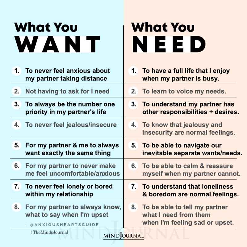 - To never feel anxious about my partner taking distance