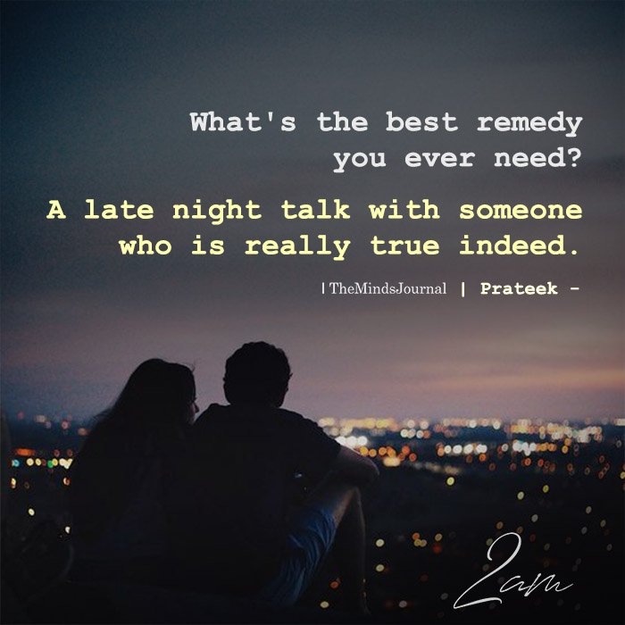 What’s the best remedy you ever need? A late night talk with someone who is really true indeed.