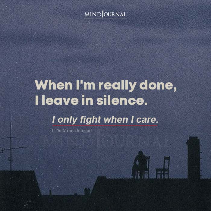 When I’m really done, I leave in silence. I only fight when I care.