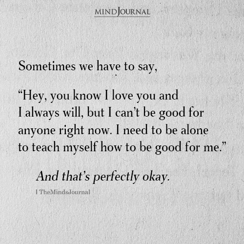 “Hey, you know I love you and I always will, but I can’t be good for anyone right now. I need to be alone to teach myself how to be good for me.”