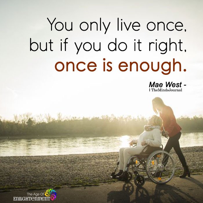You only live once, but if you do it right, once is enough.”