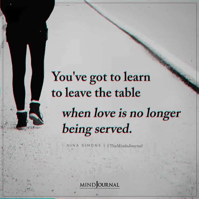You’ve got to learn to leave the table when love is no longer being served.