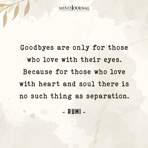 โGoodbyes are only for those who love with their eyes. Because for those who love with heart and soul there is no such thing as separation.โ