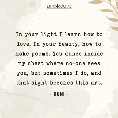 โIn your light I learn how to love. In your beauty, how to make poems. You dance inside my chest where no-one sees you, but sometimes I do, and that sight becomes this art.โ