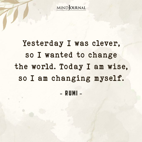 โYesterday I was clever, so I wanted to change the world. Today I am wise, so I am changing myself.โ