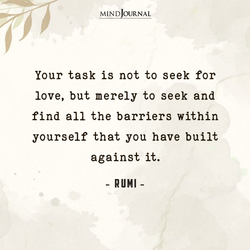 “Your task is not to seek for love, but merely to seek and find all the barriers within yourself that you have built against it”.