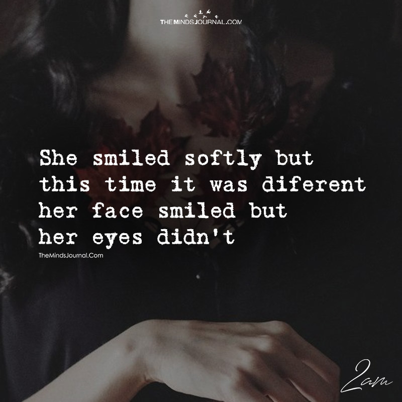 She smiled softly but this time it was different her face smiled but her eyes didn’t.