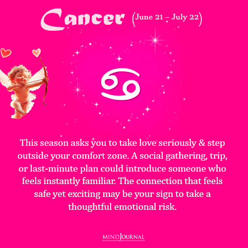 As per our Cancer December love horoscope, during the last weeks of 2025, when you meet someone for the first time and feel like you have known them for a long time, it’s the Universe nudging you to step outside of your comfort zone and take a calculated risk!