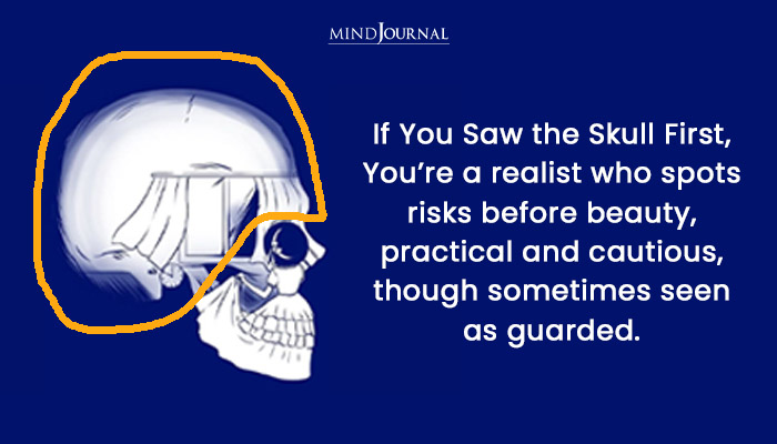It suggests to what many might call a “realist” mindset. As per the skull personality interpretations, seeing the darker, more symbolic image first often indicates a tendency to notice risks and potential problems before appreciating the beauty in a situation.