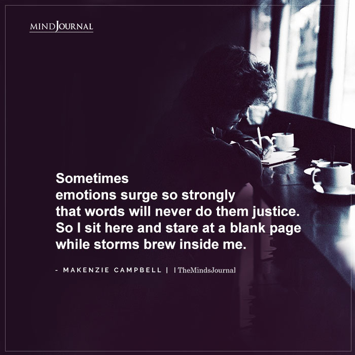 “Sometimes emotions surge so strongly that words will never do them justice. So I sit here and stare at a blank page while storms brew inside me.”