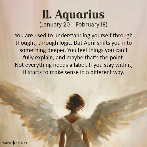 You understand yourself intellectually, Aquarius, but April asks for something deeper than that. It’s not about constantly analyzing your feelings, it’s about actually sitting in them.