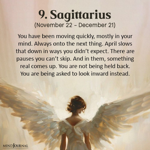 You have been moving way too fast, how not physically, but mentally. Always onto the next idea, the next possibility, the next escape. April slows that down in a way you didn’t plan for.