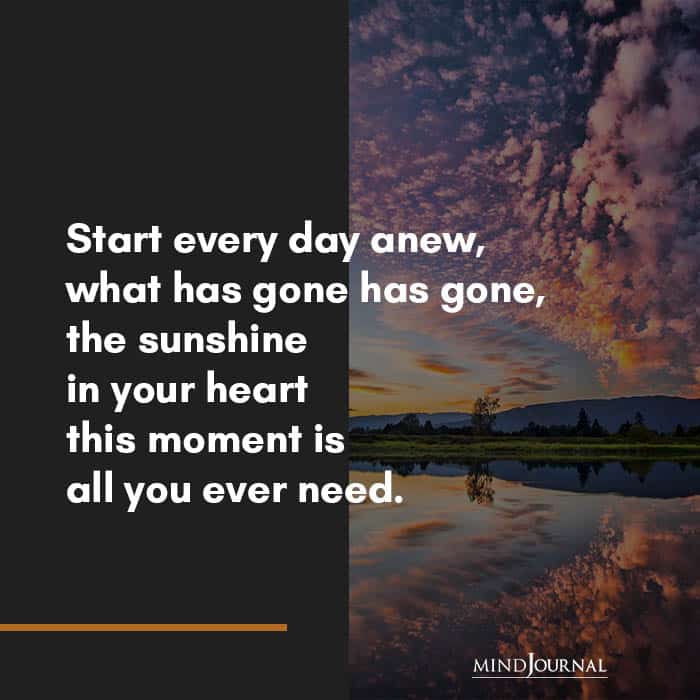 Start every day anew, what has gone has gone, the sunshine in your heart this moment is all you ever need.