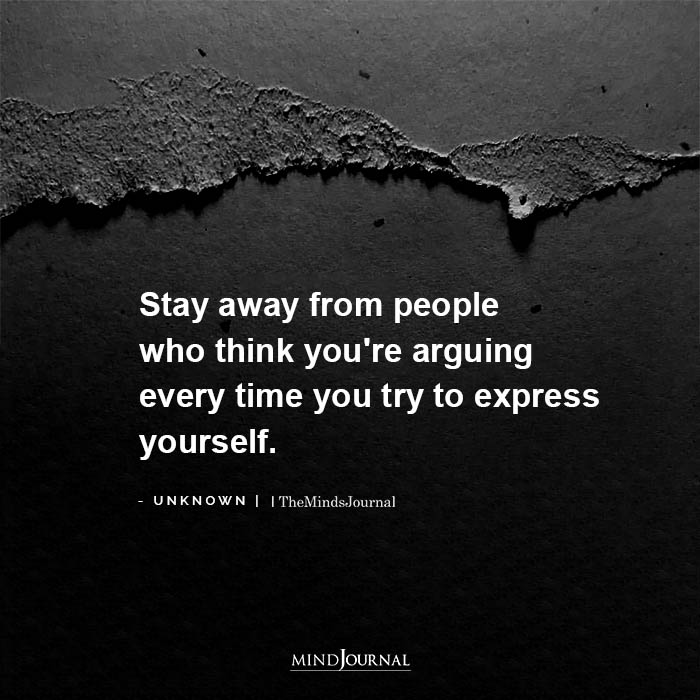 Stay away from people who think you’re arguing every time you try to express yourself.